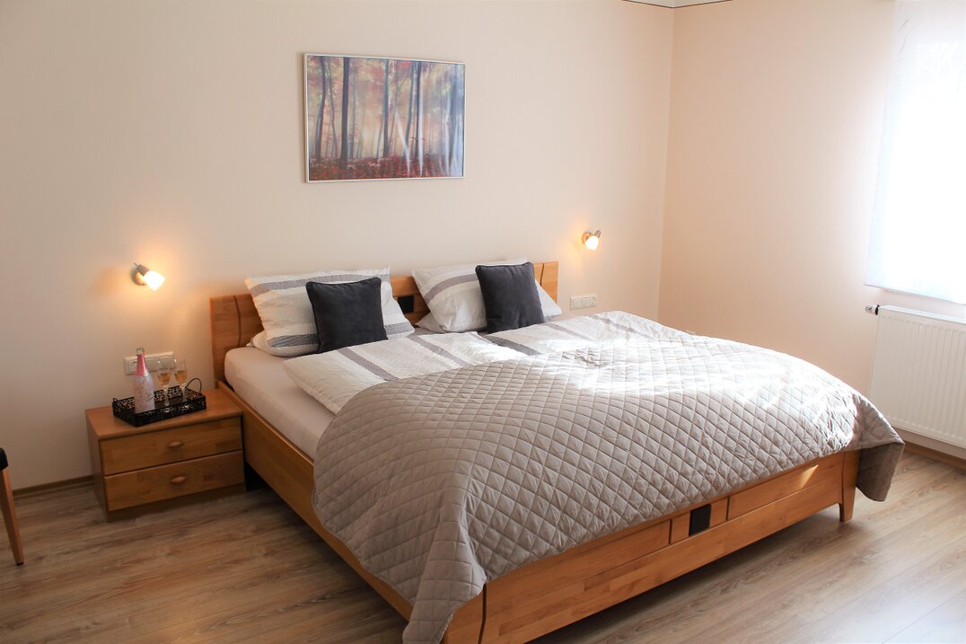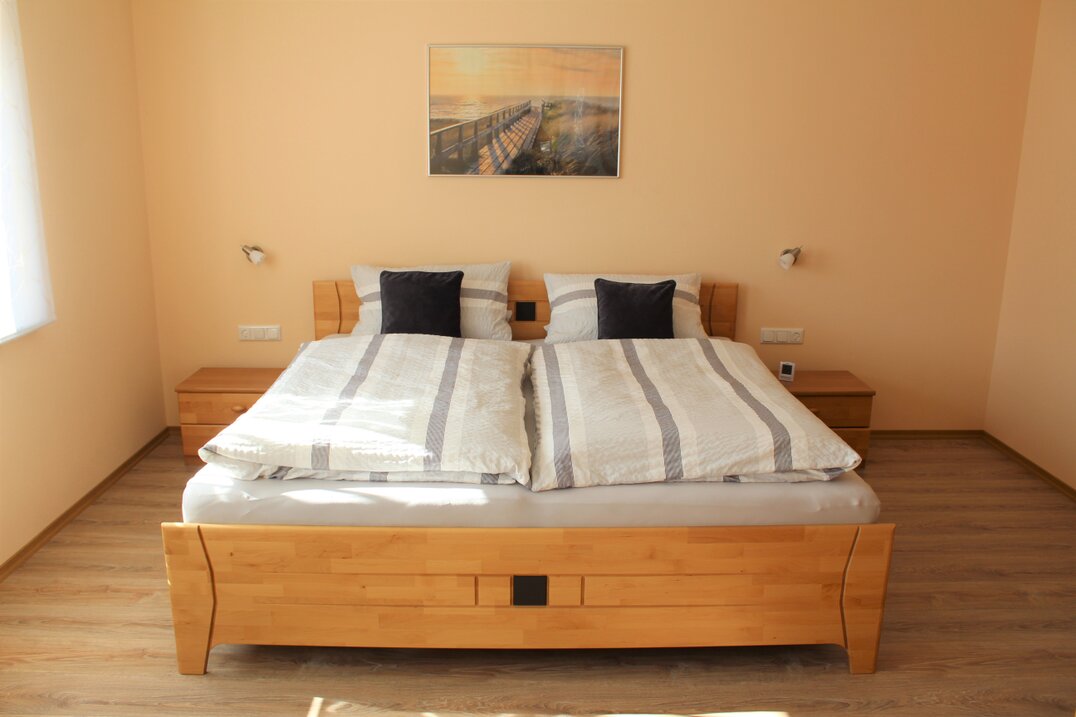 - 2 große Schlafzimmer mit bequemen Doppelbetten (200x200 cm) in Komforthöhe und Schränken mit genügend Platz für Ihre Garderobe, Sitzgelegenheit, Betten mit Bettwäsche bezogen
