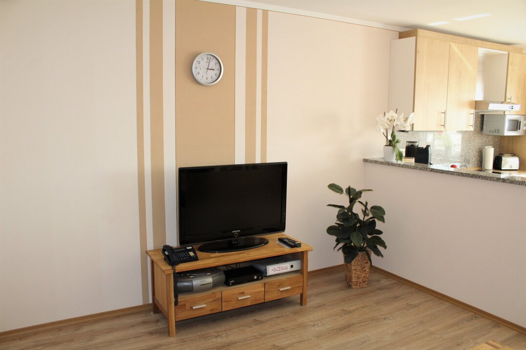 - LCD-TV und SAT-Anschluss, Telefon, Hifi-Anlage, DVD-Player